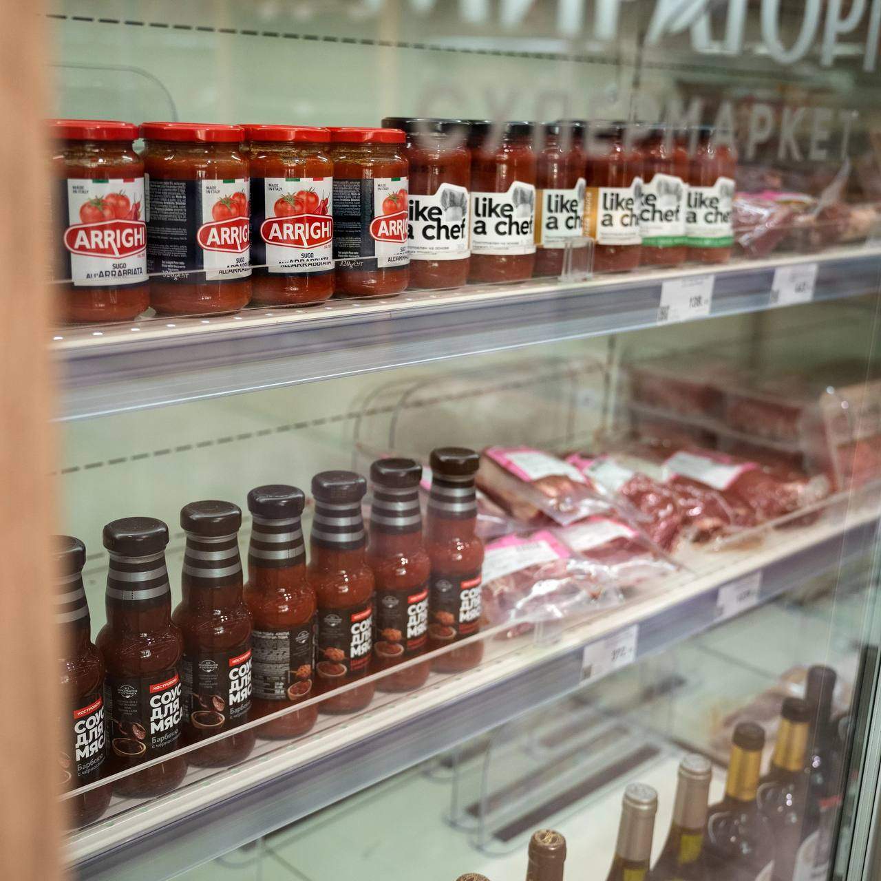 А на полицях, де було м’ясо, ставлять вино та соуси. Про це повідомив російський блогер, який опублікував відповідні фото.