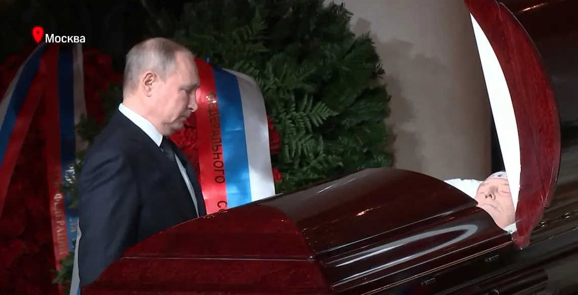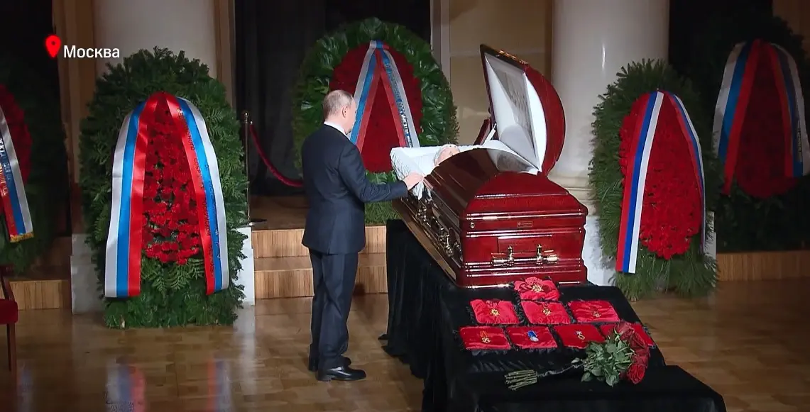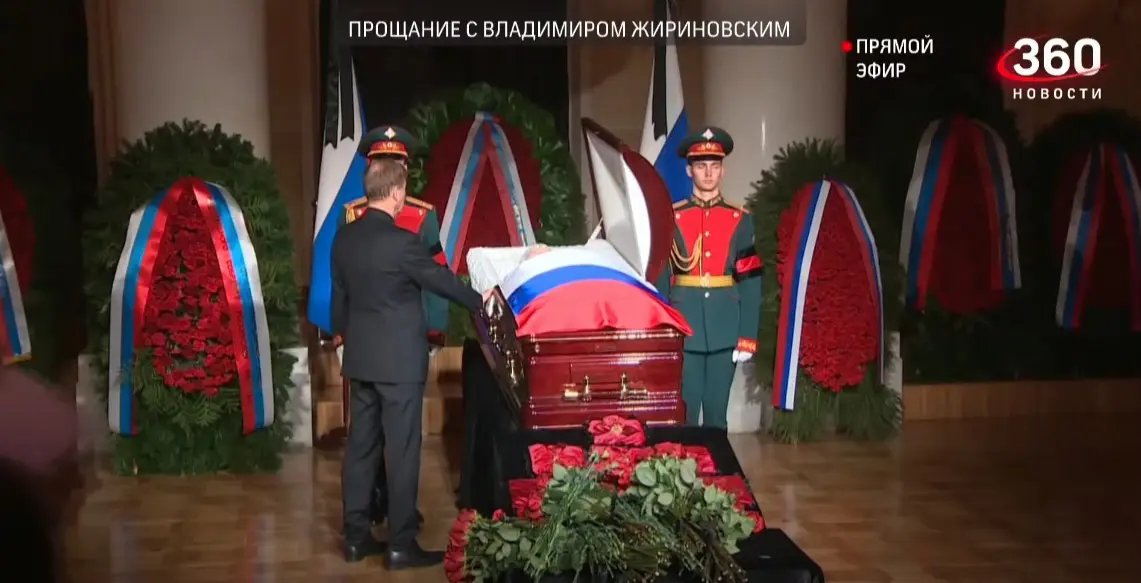 После чего тело Жириновского перевезли в Дом союзов, где с ним попрощалась вся путинская элита, и сам президент страны-агрессора.