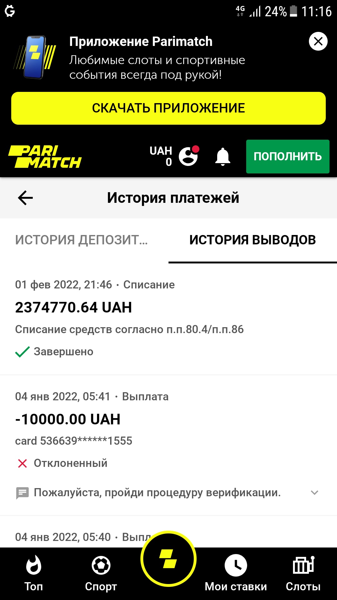 Но вся эта реклама разбивается о реальность. Дальше позвольте процитировать «счастливчика» Игоря М., который и повелся на сказки от Parimatch: