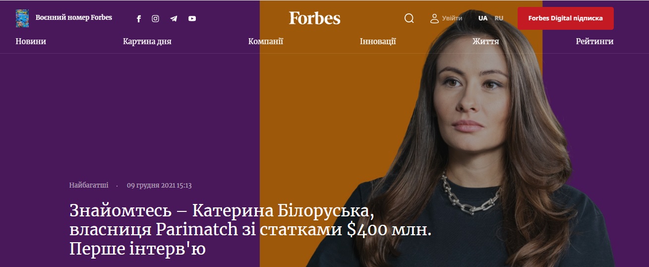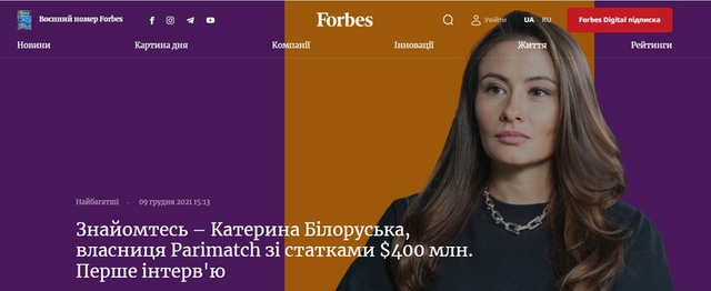 Упоминаемая Екатерина Белорусская – совладелица Parimatch, участница рейтинга миллионеров Forbes, имеет личное состояние в 400 миллионов долларов.