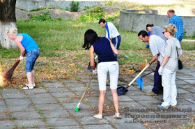 Теперь зелёная зона отдыха возле Белого дома приобрела ухоженный вид. Субботник работников Закарпатской ОГА проходил под весёлые песни и "селфи" на фоне памятнику Тарасу Шевченко.