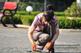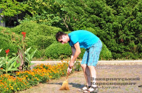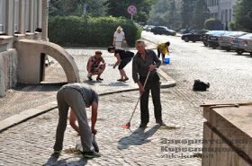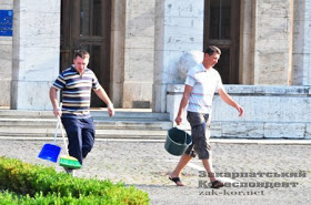 Сегодня, знойное утро 25 июля, глава Закарпатской ОГА Геннадий Москаль в простых джинсах и кроссовках, взяв в руки шпатель, вместе с работниками администрации вышел прибрать прилегающую к администрации территорию.