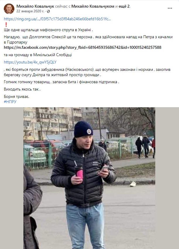 На початку того ж року достойник "засвітився" в скандальній історії протистояння столичних активістів та забудовників під час спроби розпочати зведення ЖК "Sundance" на території земельної ділянки неподалік станції метро "Лівобережна" в Києві, яка є об’єктом "Історичний ландшафт Київських гір і долини річки Дніпра" та охороняється як культурна спадщина.