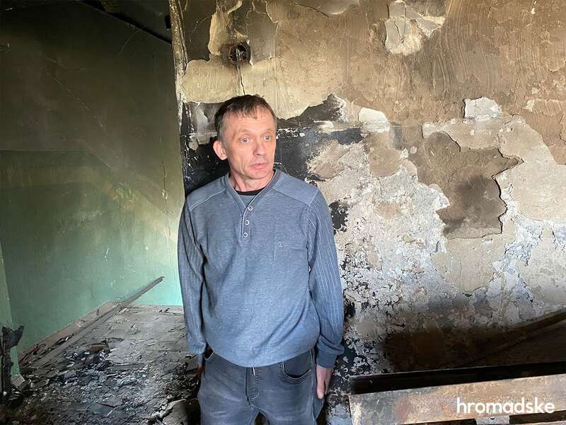 Юрий, который остался жить в пятиэтажном доме, обстрелянном россиянами. Фото: Олеся Бида / hromadske
