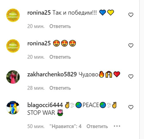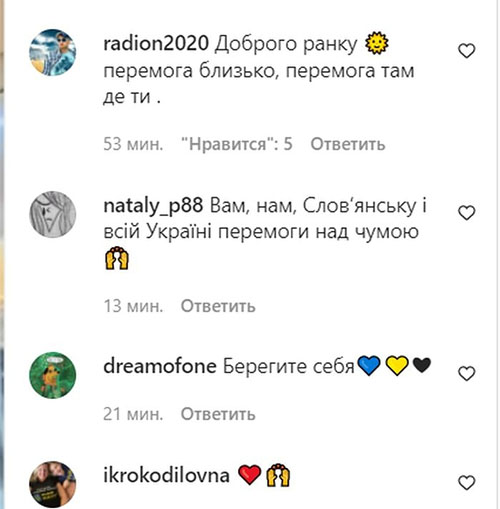 «Чудесно», «Молодец», «Победа — там, где вы!», «Спасибо, что показали, что Донбасс — это не только война», — пишут восхищенные фолловеры, желая певцу и всем украинцам победы над врагом.