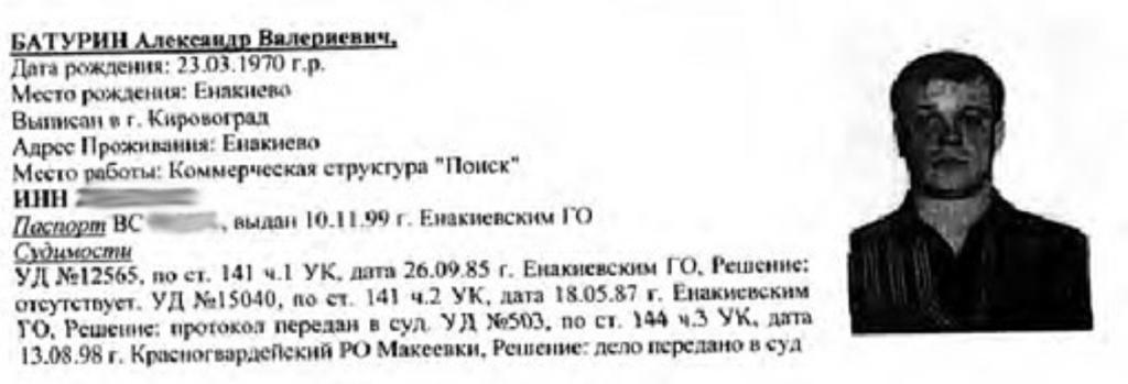 Нагадаємо, що раніше двічі судимий Олександр Батурін на початку 2000-х років вважався так званим "смотрящим" за містом Єнакієве. Його зірка зійшла на кримінальному небосхилі Донеччини паралельно із зростанням впливу в регіоні низки угруповань, які діяли під патронатом народного депутата 6 і 7 скликань Юрія Іванющенка. Подейкували, що саме "Батура" виступав одним із довірених осіб парламентаря.