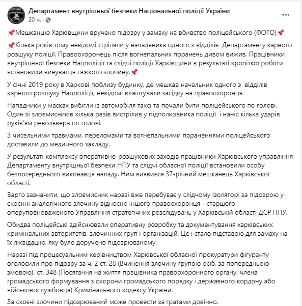 Теги: КілериСІЗОЛогвиненко АлексейправоохоронціКозлов МихаилНацполіціязамах на життяПідозраХарківська область
