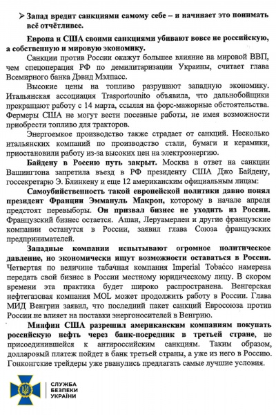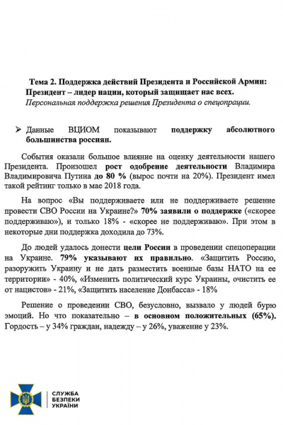 "А для большей убедительности аналитики ФСБ приводят целый блок "самой честной статистики" о заоблачной поддержке российского диктатора и перечисляют аргументы, чтобы россияне не боялись дефолта и международных санкций", - пишет пресс-служба.