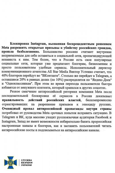Сотрудники СБУ перехватили методичку во время рассылки по секретным каналам.