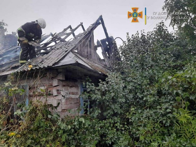 А в селі Підцир’я Камінь-Каширського району рятувальники ліквідували горіння хати-пустки, що також загорілася через влучання блискавки.