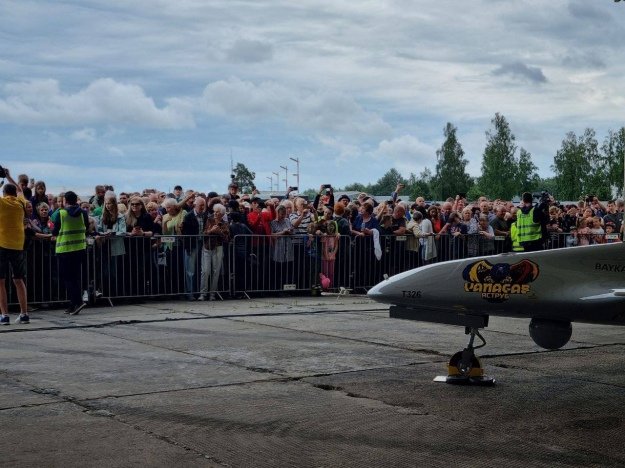 Литовцы, собравшиеся на авиабазу, чтобы увидеть отправление беспилотника Украине, говорят, что «очень счастливы», испытывают «невыразимые ощущения», желают Украине успеха — и удивлены, что Bayraktar в жизни выглядит меньше, чем казалось.