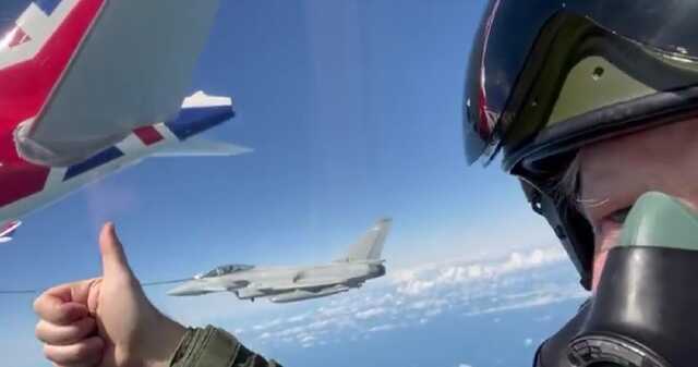 Офис премьер-министра Великобритании опубликовала видео, снятое Борисом Джонсоном в кабине истребителя Typhoon.