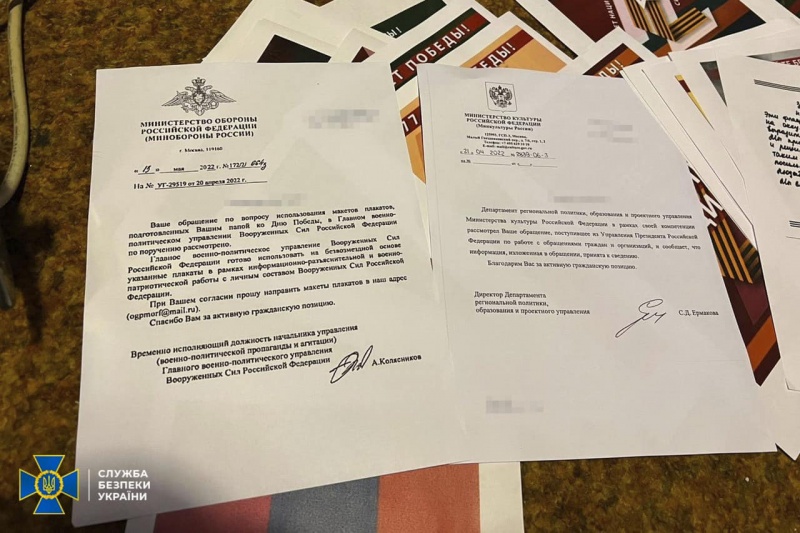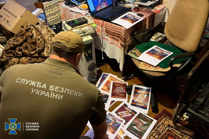 СБУ изъяла компьютерную технику, листовки и плакаты с российской символикой, а также благодарственные письма от министерства обороны РФ. За содеянное, художник может сесть в тюрьму на 12 лет.
