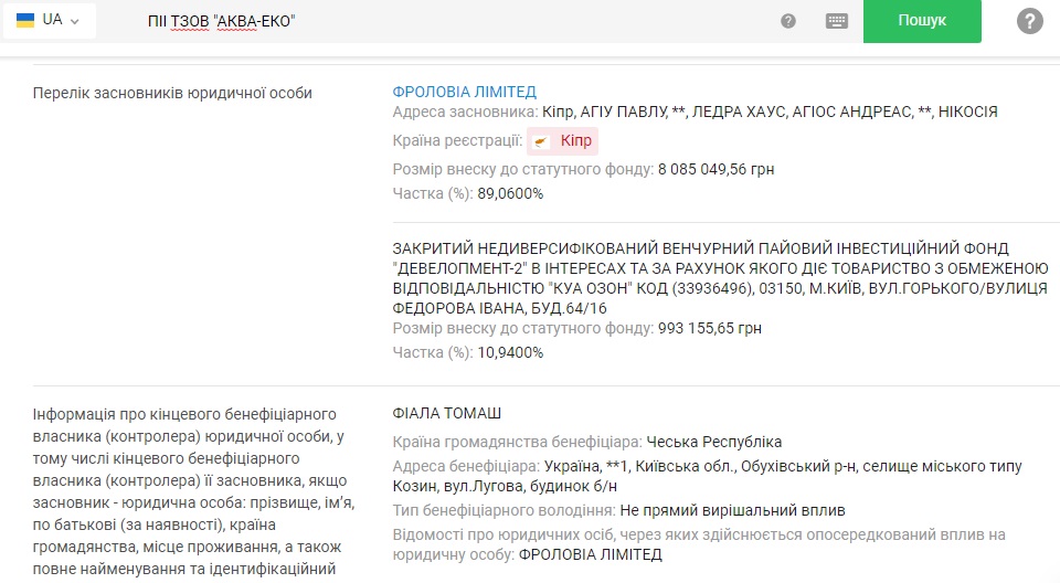 Той самой «Аква-Эко», которая и получила право на добычу минералки в результате странного конкурса. Сейчас ее бенефициаром является Томаш Фиала, а основателем – кипрский оффшор: