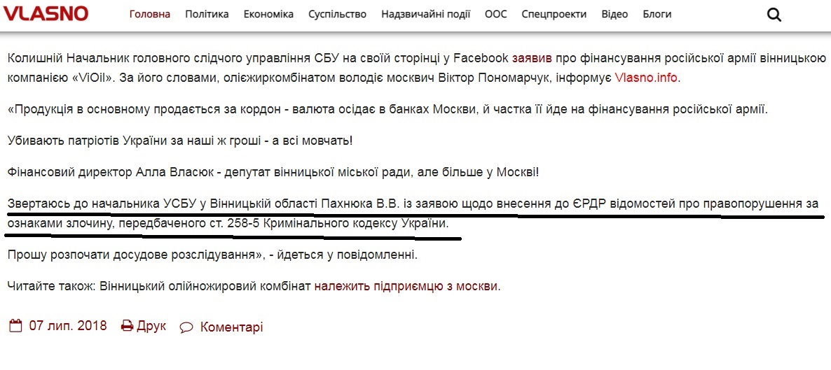 О том, что ViOil финансирует российскую армию, заявлял еще в 2018 году бывший начальник главного следственного управления СБУ: