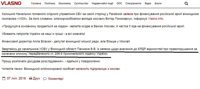 «Бизнесмен» из сообщения СБУ и «Особа_2» из судебных документов – это Виктор Евгеньевич Пономарчук, владелец группы компаний ViOil, одного из крупнейших производителей и экспортеров подсолнечного масла в Украине. В состав промышленной группы ViOil входят Винницкий и Черновицкий масложиркомбинаты, сеть ХПП и элеваторов в Украине, торговые представительства в Виннице, Черновцах, Киеве и Москве.