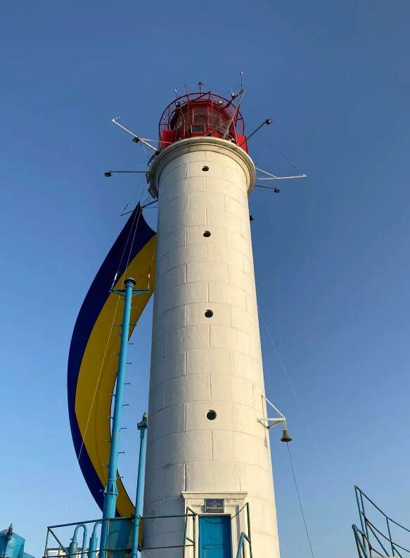 Как сообщили журналистам в пресс-службе Одесской областной военной администрации, на маяке развернут желто-голубой флаг – самый большой флаг Одесщины.