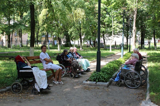 После разговора идем на экскурсию в хоспис. Часть больных - на свежем воздухе: