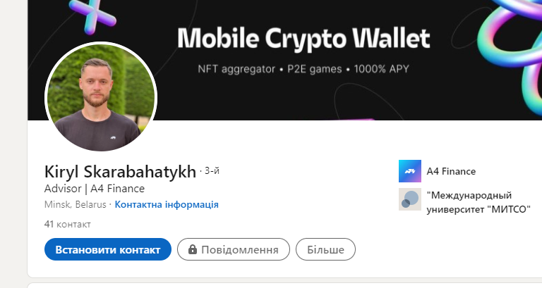 Украинец Александр Фельдман (Alex Feldman), представляющийся как CEO проекта в сфере криптобизнеса A4 finance является аферистом, который работает с российскими подельниками.