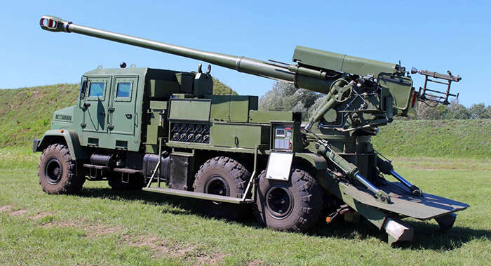 155-мм САУ "Богдана", отечественный аналог французской САУ Cаesar, с дальностью стрельбы до 40 км разрабатывалась на основании совместного решения МО Украины и ПАО "Краматорский завод тяжелого станкостроения" в рамках ДОЗ с февраля 2016 года. Планировалось заказать для ВСУ 18 установок, но из-за искусственных задержек САУ все еще не вышло из этапа госиспытаний. Сейчас «Богдана» успешно действует на фронте, она участвовала в операции по освобождению о. Змеиный.