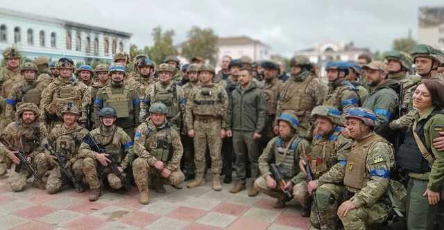 "Сегодня, в освобожденном украинскими десантниками Изюме, подняли флаг Украины! В торжествах приняли участие президент Украины Владимир Зеленский, заместитель министра обороны Анна Маляр, представители ВСУ и других силовых подразделений, несколько дней назад освободивших город от решительских оккупантов", - сообщили в бригаде .