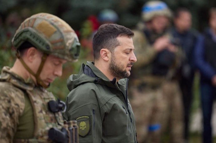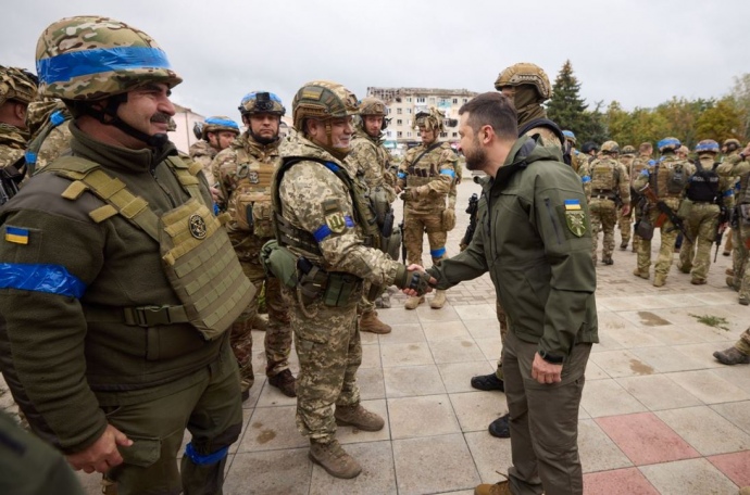 "Все присутствующие почтили память погибших защитников минутой молчания, далее президент Украины поблагодарил воинов за освобожденные украинские земли и в торжественной обстановке подняли украинский флаг над городским советом! Изюм – это Украина! Слава Вооруженным Силам Украины! Слава Украине!" – отметили украинские воины.