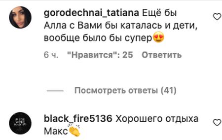 "Вау, как классно"; «Талантливый человек талантлив во всем!»; «Умник. Все успеваете»; «классная скорость»; «Хорошего отдыха»; "Еще Алла с вами каталась бы и дети, вообще было бы супер", - отреагировали подписчики артиста.