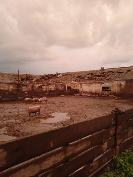 Кроме того, существенно пострадала местная ферма. В результате обстрела погибли около 100 голов свиней и одна лошадь. Были повреждены два зерносклада, водонапорная башня, мельница, помещения свинофермы и хозяйственные сооружения. Также повреждены три колесных трактора и автомобиль ЗИЛ.