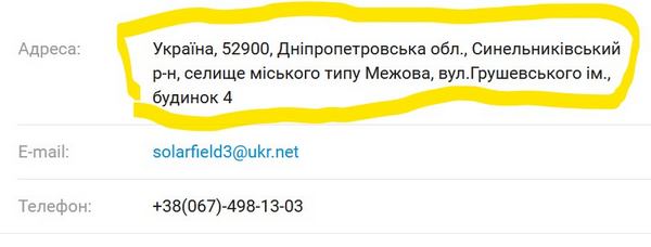 Справочно. Основателем «ЭДС-проекта» и «ЭДС-Инжиниринга» является предприниматель Александр Запышный. Он также владеет рядом фирм в области солнечной энергетики (Фортис Солар, Эко рей, Соларфилд-3 ), прописанные в поселке Межова (Днепропетровская обл.) по ул.Грушевского, 4.