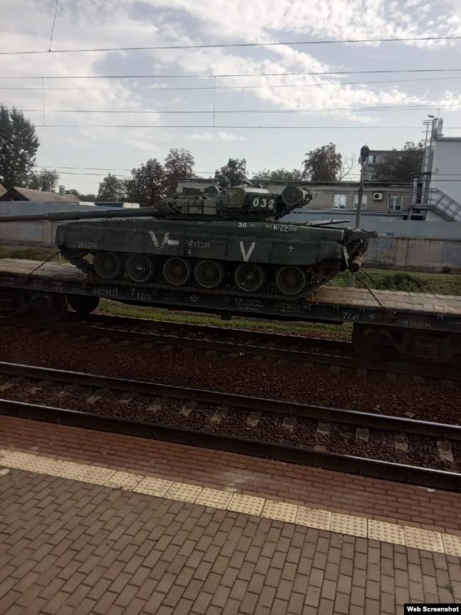 Ответ на вопрос, зачем России приходится уже 5 месяцев расконсервировать и перебрасывать в Украину в буквальном смысле музейную технику, можно найти в другом посте во "ВКонтакте", на фото, опубликованном всего 4 дня назад, 18 сентября. На нем видна платформа с танком, который эксперты Conflict Intelligence Team идентифицировали по просьбе Радио Свобода как Т-80БВ, одну из промежуточных модификаций Т-80, поступившую на вооружение советской армии "всего" 37 лет назад, в 1985 году.