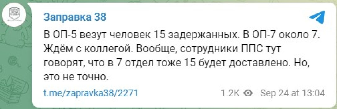 Во многих городах России возобновились акции протеста против войны в Украине и принудительной "долевой" мобилизации. В частности, 24 сентября протесты возобновились в Иркутске, Улан-Уде, Новосибирске, Томске, Чите, Хабаровске и других городах. Выйти на протесты призвало антивоенное движение "Весна" и сторонники оппозиционера Алексея Навального.