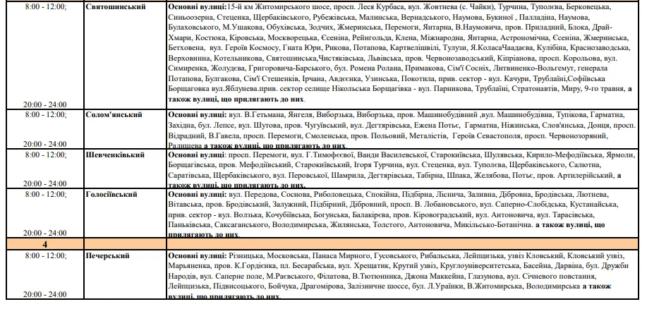 Об этом предупредили в ДТЕК. Графики отключений для Киева и области по районам размещены на официальном сайте компании. В нем указано, что во всех районах города электроснабжение может отключаться:
