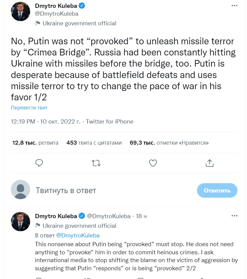 Теги: Кулеба ДмитрийНапад Росії на УкраїнуВойнаВійнаРакетные ударыРакетні удариВзрыв на Крымском мостуКрымский мост