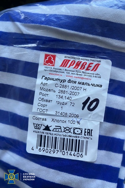 В помещении нашли милитаристическую детскую одежду, копирующую форму российских войск. Такими "подарками" и бесплатными продуктами оккупанты хотели подкупить жителей для голосования на фейковом волеизъявлении.