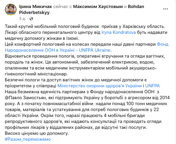 В Изюме начал работу мобильный роддом, который передали в ООН