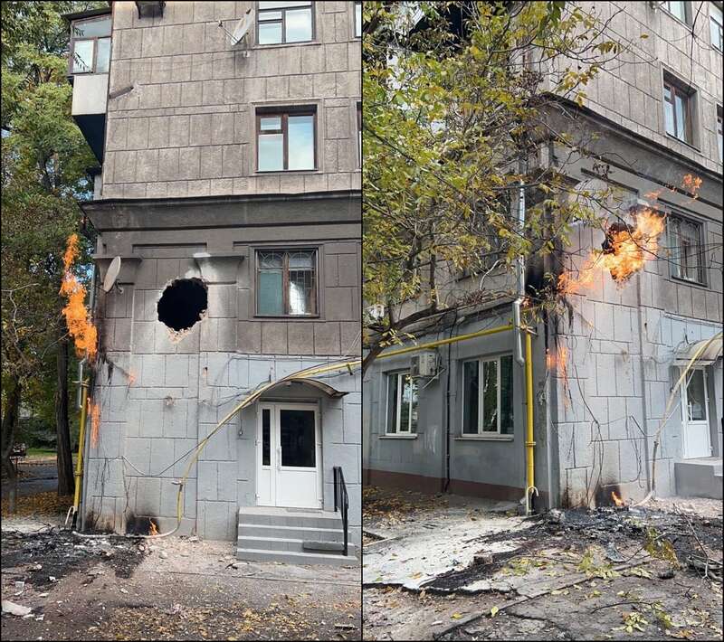 Также местные телеграм-каналы публикуют кадры последствия прилета в пятиэтажку в Запорожья, где прорвало газовую трубу. На месте повреждения виден огонь.