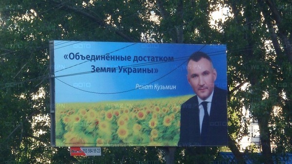 Очень порадовал своим билбордом и другой кандидат на главный государственный пост - экс-генпрокурор Ренат Кузьмин. Вот у кого все по-настоящему хорошо: и с креативом, и со смекалкой! Несколько новых планет, "объединённых достатком" в "Земли (!) Украины" (см. фото), Ренат Кузьмин разместил где-то, где, судя по девственной целостности рекламного борда, его никто не видит.