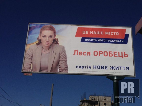 Упоминать что-нибудь "новое", также, определенно является трендом политагитационного щит-"дефиле" кандидатов всех уровней. Так, претендентку на пост киевского мэра Лесю Оробец, поддерживает партия "Нове життя". Правда, "Нове життя" почему-то похоже на "Сильную Украину" Сергея Тигипко, образца 2010-го года. К слову, российский триколор, читающийся на билбордах Оробец, наверное, не самое удачное цветовое решение здесь и сейчас.