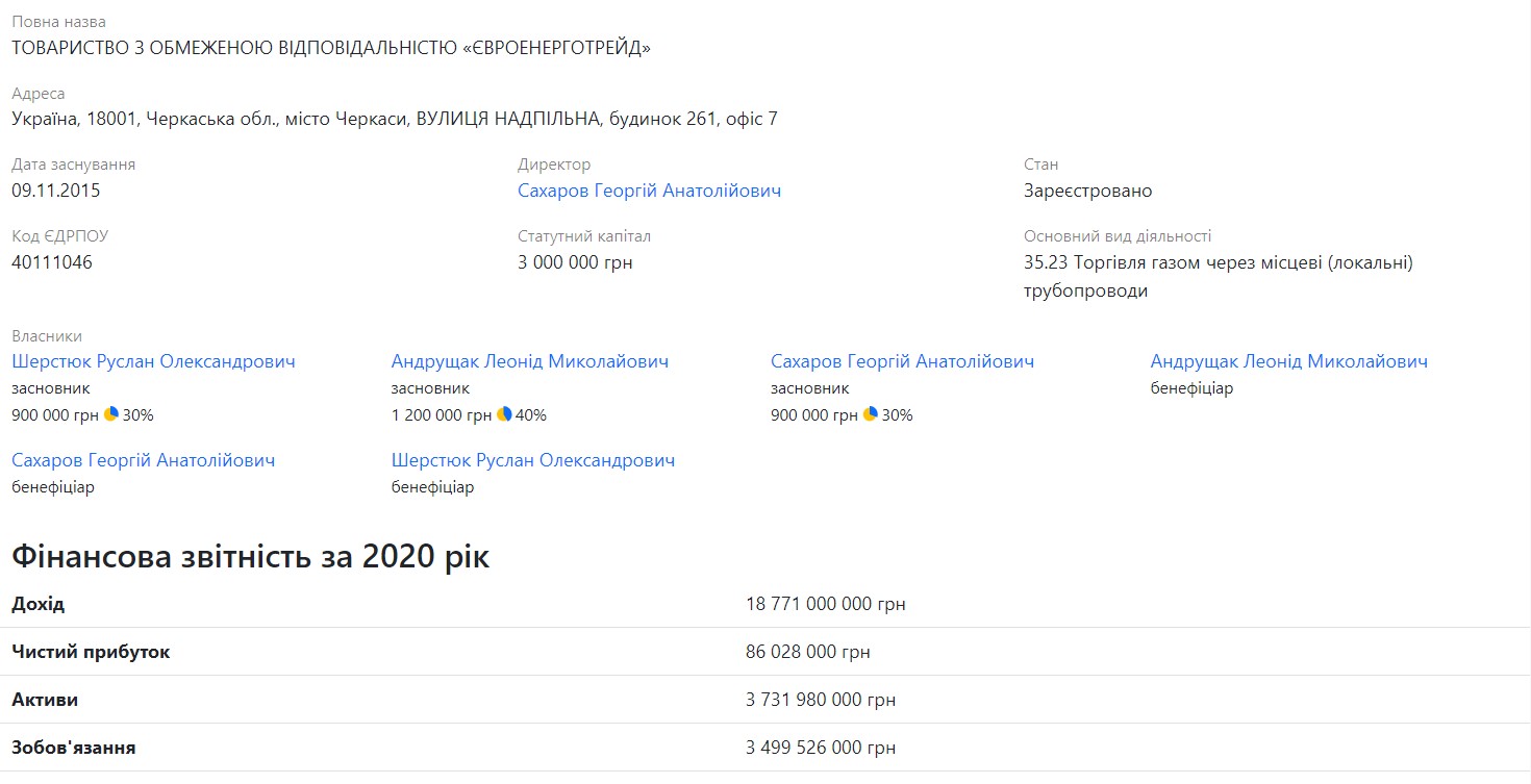 Начнем с ООО «Евроэнерготрейд». Фирма зарегистрирована в Черкасах и действительно фамилии Кохан в ее учредителях нет: