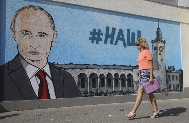 Крім того, у ЗМІ з’явилися фото будинків у Сімферополі, які розмальовані портретами Путіна і підписані словом "Наш".