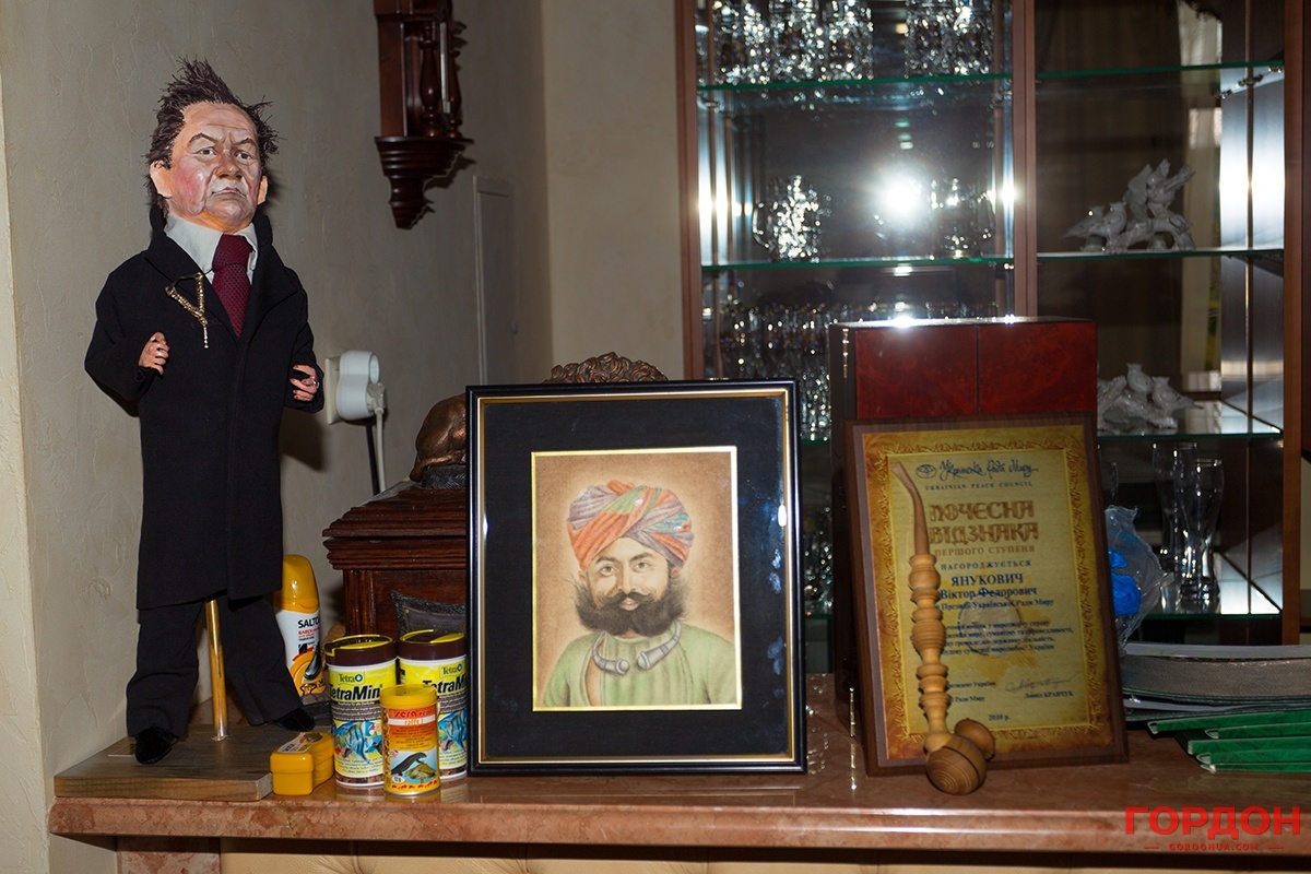 Мысли по поводу. Во дворец Януковича, отпугивающий народ опечатанными дверями, Петр Олийнык, взваливший на себя обязанности здешнего хранителя, провел нас по подземному ходу из физкультурно-оздоровительного комплекса. Хотя я бы не отказалась задержаться в ФОКе, где, помимо теннисного корта, тренажеров, тира, ринга и бильярдной, есть что-то вроде комнаты славы хозяина.
