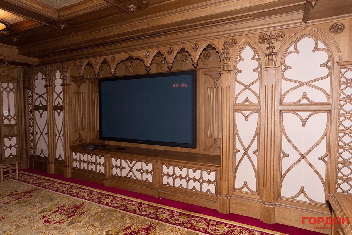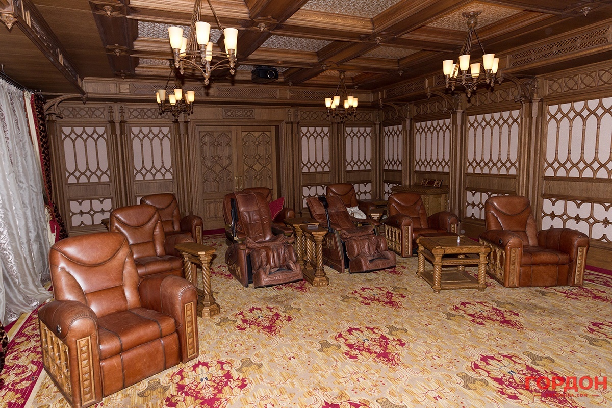 Здесь же расположен частный кинотеатр Януковича: девять кожаных кресел, включая два массажных, экран для просмотра фильмов из проектора, который опускается, очки 3D. Петр любезно разрешил мне посидеть в массажном кресле, которое тычками и вибрацией услаждало пятую точку и спину Виктора Федоровича. Ощущения, я вам скажу, незабываемые. Мелькнула крамольная мысль: уж не мозоль ли хозяин себе таким образом наращивал, чтобы было не больно, когда турнут коленом под зад?