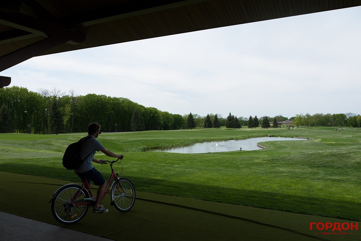 И вот мы внутри периметра, огороженного восьмиметровым зеленым забором, по верху пропущена колючая проволока (интересно, под напряжением?). Как уверяют злые языки, Янукович соорудил для себя персональную зону: мол, привычка – вторая натура. Нашим "сталкером" в этой "зоне" стал 33-летний активист Автомайдана, а ныне комендант "Межигорья" Денис Тарахкотелик. В сдержанном человеке в камуфляже чувствуется недюжинная внутренняя сила. Обладатель диплома философа и черного пояса карате, говорящий по-английски и по-итальянски, ждал в гостевом домике, приспособленном под штаб, и вместе со своими замами провел по углам и закоулкам отвоеванной у старой власти территории.