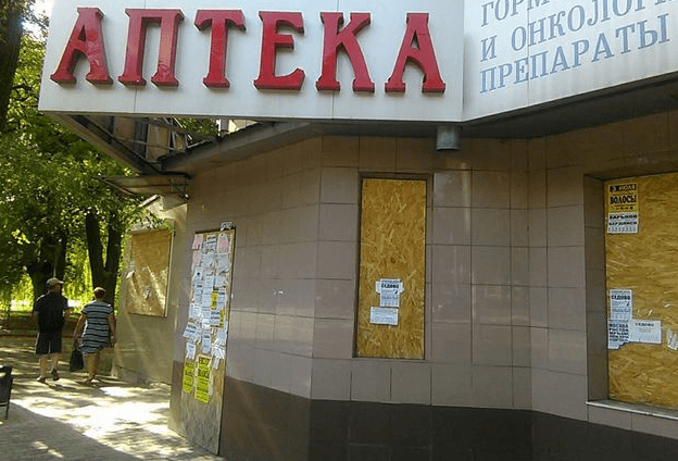 1. Донецк. В сгоревшем торговом павильоне продают портреты Путина. Одна из лучших иллюстраций российской оккупации.