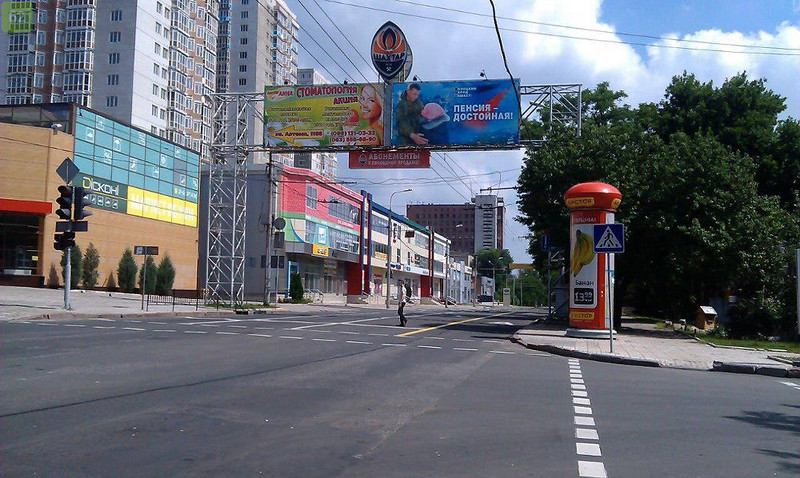 24. У больницы Калинина в Донецке. Говорят украинские флаги замазали дэнээровским траурным триколором, но он облез.