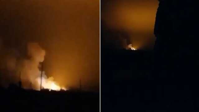 На кадрах виден большой пожар, яркие вспышки в небе, а также слышны звуки детонации вражеских боеприпасов. Как уточнил автор сообщения, они взрывались около трех часов.