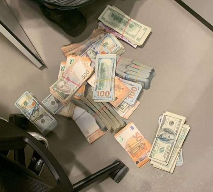 Кроме того, были изъяты мобильные телефоны, электронные носители информации, черновые записи, печати и деньги в сумме 860 тысяч гривен, 330 тысяч долларов США и 34 тысяч евро, происхождение которых устанавливается.