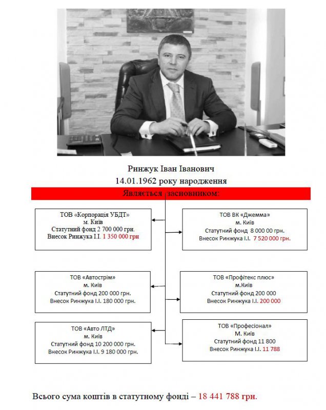Преступная схема давала возможность через посредников получать бешеные сверхприбыли. Установлено, что Иван Ринжук причастен к 23 фирмам. У одних он был основателем, у других – директором, третьими – через близких родственников – руководил. Во многих из них уставный фонд не намного превышает вклад самого Ивана Рынжука.