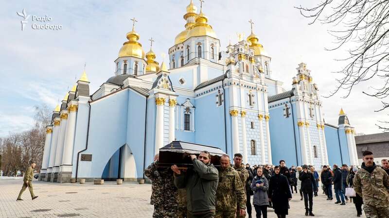 В Киеве на территории Михайловского Златоверхого Собора состоялась церемония прощания и отпевания крымчанина, общественного активиста, бывшего политзаключенного Кремля Геннадия Афанасьева, погибшего на фронте 21 декабря . Репортаж с церемонии опубликовало Радио Свобода.