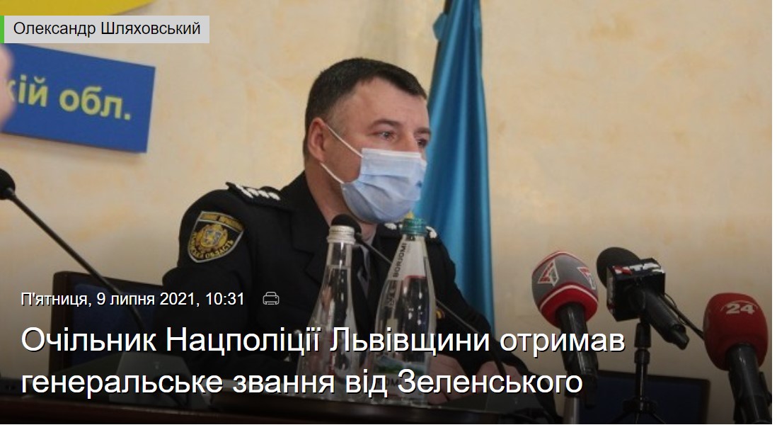 Особенно с учетом стремительной карьеры, которую сделал господин Шляховский. Ведь еще совсем недавно – в 2016 году – он был замом в милиции Броваров. И стал одним из тех, кто провалил все тесты при реформировании системы МВД. Но восстановился в органах через суд и продолжил карьеру, причем резко пошел в гору: Шляховский стал замом начальника областного Главка, оттуда поехал руководить полицией Закарпатья, а в начале 2021-го возглавил полицию Львовщины. В том же 2021 году Зеленский присвоил ему звание генерала полиции третьего ранга.